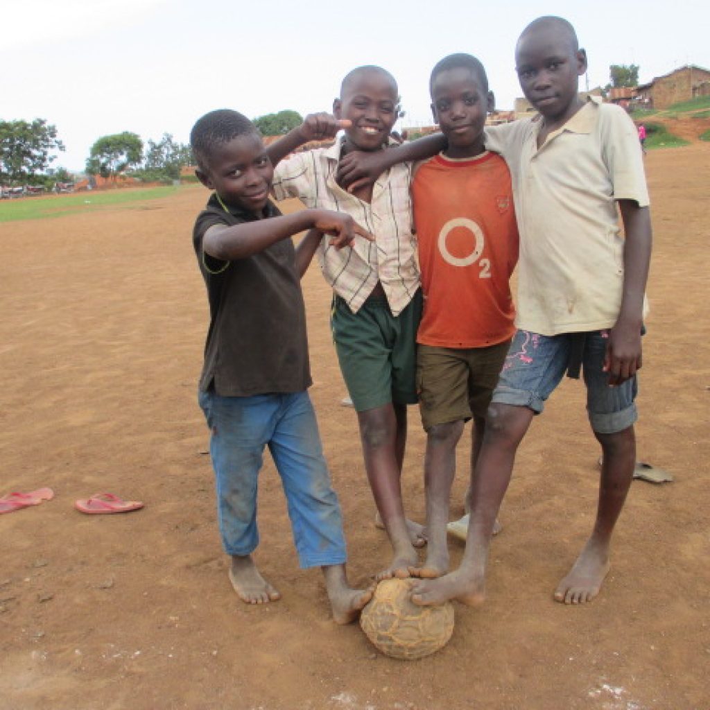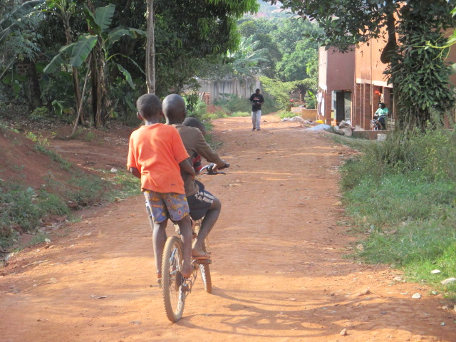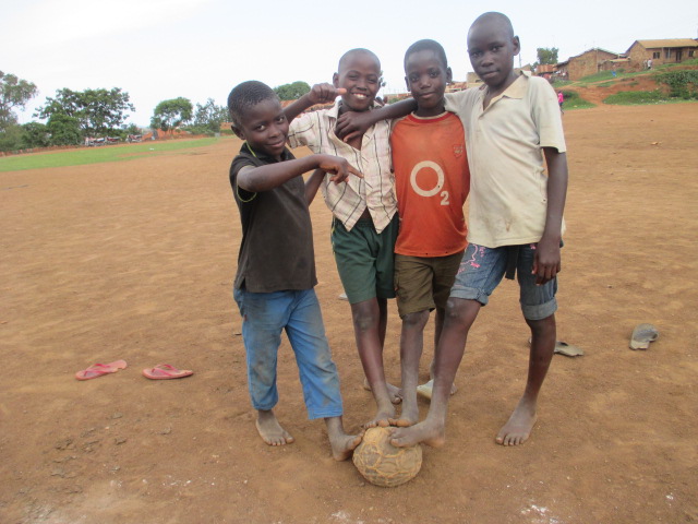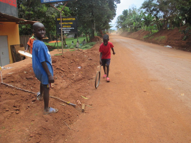 Los niños africanos construyen sus propios juguetes con lo que tengan a mano y les sacan el mayor provecho posible. A partir de pedazos de madera, hueso, retales, latas, cuerdas y plásticos, los niños ugandeses crean auténticas maravillas:bolsas de plástico y unas cuantas gomas se convierten en una muñeca; los tapones de los refrescos se transforman en las ruedas de una moto o un coche ¨teledirigidos¨ por una cuerda o alambre; grandes botellas de plástico cortadas por la mitad hacen de trineo. Los niños se sientan dentro y se arrastran unos a otros; cuatro bolsas de plástico y unos cuantos trozos de papel forman un balón de fútbol.